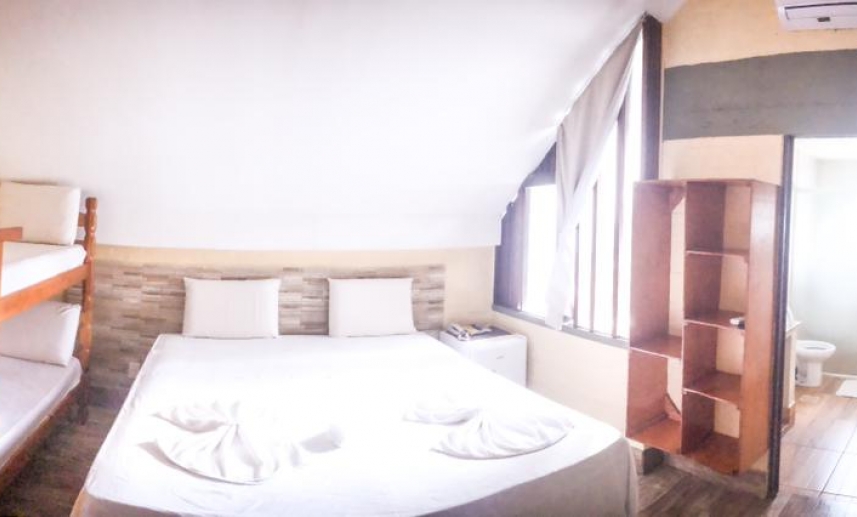 Essa suíte é perfeita para grandes famílias , é composta por uma cama de casal + 01 beliche + 01 cama de solteiro conta com Tv de LCD 32 pol , Ar condicionado Split , Frigobar e banheiro Privativo